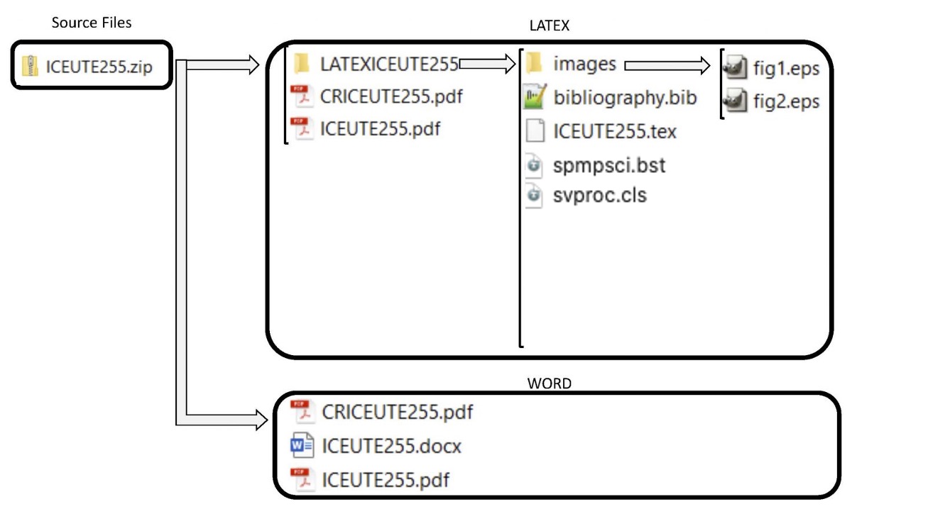 - Create a zip file, named ICEUTE + number. (zip extension), where “number” is the article number given by Easychair. Example: ICEUTE255.zip